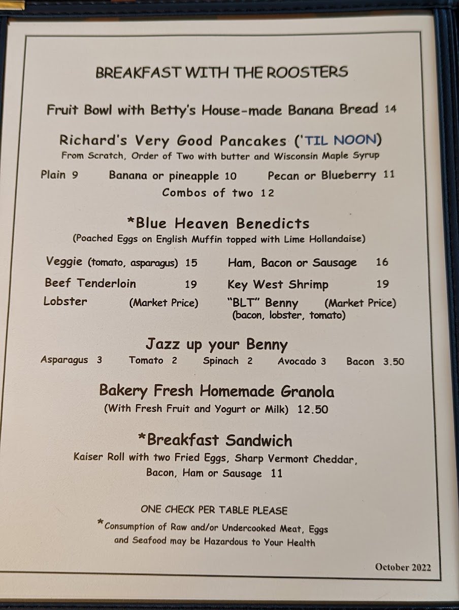 Start your day with their acclaimed Breakfast with the Roosters, featuring indulgent dishes like the Shrimp and Grits and the Lobster Benedict. Diners rave about the unique fusion of flavors, like the rich white cheddar grits paired with perfectly sautéed shrimp. For lunch, the Chicken Salad Sandwich and the refreshing Yellowtail Snapper Salad showcase the restaurant’s commitment to fresh, high-quality ingredients.
